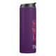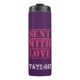 Este tumbler termal tiene un bonito diseño y presenta un fondo morado con "Sent with Love" escrito en tipografía rosa. Justo debajo hay una plantilla para personalizar tu nombre en morado claro. ¡personalizar tuyo hoy! Foto de Huckleberry Hearts, LLC, © www.Huckleberry-Hearts.com