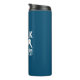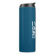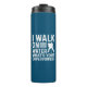 El tamborilero térmico del jugador de hockey con un dicho humorístico presenta texto blanco sobre fondo azul y un jugador de hockey sobre silueta blanca. El texto de este tamborilero de hockey dice Camino por el agua ¿Cuál es tu superpotencia?