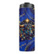 Tumbler azul real y dorado con un símbolo de toro para el signo del horóscopo Taurus con fondo estrella. Un sorprendente ilustracion de arte aéreo.