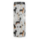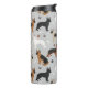 Pastores alemanes en negro y marrón, negros y rojos, negros y plateados, blancos y de color dorado se sientan y se paran con huesos de perro dispersos y huellas de pata en un fondo gris claro.