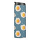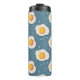 Patrón de huevos fritos frescos en un fondo azul cielo. Desayuno por la mañana:)