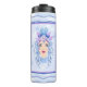La reina de hielo Sirena Tumbler de azul con un ilustracion de la cabeza de una sirena de bonito. El fondo está decorado con una temática de burbujas azul ondulante, con hierbas marinas en los lados. Gracias al Hungryjpeg y a la Fabrica Creativa por algunos de los elementos del diseño.
