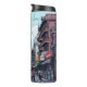 Comic book style ai ilustracion del centro de la ciudad de Kolkata, la arquitectura de la India, motos y coches. Un tumbler con un ilustracion de calle concurrida en el centro, con edificios, restaurantes, tiendas y gente en sus motos.