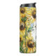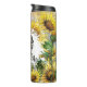 Diseño artístico de girasol colorido con la cara de una mujer con gafas de sol y texto de la vida en masa.