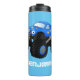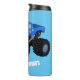 Este lindo camión monstruo azul está listo para la acción de las carreras. ¡Un camionero de alta octania se divierte con un estilo personalizado feliz!