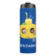 Para divertirse en un submarino lindo, este diseño presenta un submarino amarillo con 2 excitados chicos en su aventura bajo el mar. Dibujado en un estilo de ilustracion personalizado feliz.