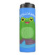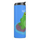 Esta adorable y feliz rana verde sentada en una almohadilla de lirio morado es brillante y adorable. Mucha diversión anfibia dibujada al estilo personalizado feliz.