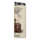 su detallado y vintage ilustracion capta el clásico espíritu de viaje y aventura. Un pequeño plano amarillo de una hélice se sitúa sobre una gran maleta de cuero angustiada con mechones metalizado. En el fondo, se ve un mapa del mundo descolorido y dibujado a mano, que completa una escena nostálgica que evoca el romance de una era de exploración pasada. Los tonos suaves de las obras de arte y las líneas refinadas e intrincadas le dan el aire atemporal de un libro de cuentos clásico o de un afiche de viajes del viejo mundo.