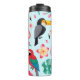 Ilustraciones acuáticos de aves, flores tropicales y hojas. Patrón tropical sin foco