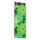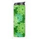 Tumbler en una huella de kimono floral japonesa - flores estilizadas en tonos verde cal y agua sobre un fondo verde esmeralda profundo