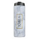 Elegante y sobrio diseño, con una elegante estampación de piedra de mármol blanco y gris. Monograma personalizado en color negro sugerido dentro del marco geométrico de tonos fríos. El tamaño del marco se puede ajustar para que se ajuste a su nombre.