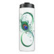 The symbol of infinity with a bright, green, artistic peacock feather on a white background. Tattoo style.