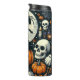 Get into the Halloween spirit with this festive thermal tumbler, featuring a cute jack-o'-lantern in a witch's hat against a spooky moonlit backdrop. Perfect for keeping your drinks hot or cold while celebrating Halloween!