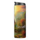 Jesucristo parado en un hermoso paisaje florido bajo un cielo radiante y dorado. La inspiradora cita de "2 Corinthians 13:14" dice: "Que la gracia del Señor Jesucristo, y el amor de Dios, y la comunión del Espíritu Santo estén con todos ustedes". Combinando bendición divina con un recordatorio diario de la fe cristiana y la comunión espiritual.