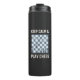 Diseño de tablero de ajedrez con el dicho: Mantente tranquilo y juega al ajedrez.