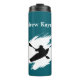 A thermal tumbler that maintains the temp of hot or cold beverage. Scroll down for a complete product description. A design for the avid Kayaker. The design features the silhouette of a kayaker inside an artistic shape on a dark background. Personalize the design with a name. The text is easily changed by using the template. For other text or design edits, select "Personalize this design" then select "Edit using Desing Tool." if the Edit selection is not shown, the Personalize selection will automatically take you to a page where numerous edits are available.