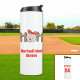 Este moderno tumbler termal de mamás de béisbol presenta un diseño lúdico de un béisbol adornado con un arco rojo para darle un toque divertido y deportivo. Las dos "M" están decoradas con un divertido estampado de leopardo que le da un toque de moda y feroz. Incluye el nombre del equipo de tu jugador favorito, y agrega su propio nombre y número al reverso. ¡Una mezcla perfecta de deporte y moda para las madres que más se alegran! Todo el texto (excluido el gráfico) es totalmente personalizable o extraíble.