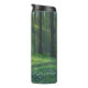La luz del sol se filtra a través de árboles altos y densos, lo que arroja un resplandor radiante sobre un frondoso y verde suelo forestal salpicado de delicadas flores blancas. El entorno sereno evoca una sensación de paz y tranquilidad.