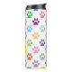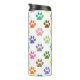 La pata colorida imprime el modelo en el vaso blanco la termal del fondo