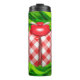 Termo Ladybug en verde hierba rojo gingham check lindo
