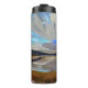 Diseño artístico de un lago con el dramático cielo reflejado en el agua del lago. Las colinas y los campos rodean el lago.