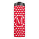 Letra inicial del personalizado Polka Punto rojo y blanco. Hace un lindo regalo que se puede personalizar con cualquier letra inicial. Relájese con nuestro Tumbler Termal del Patrón Polka Dot con un diseño de letra inicial personalizado. Mantente a la moda y respetuoso con el medio ambiente con este accesorio duradero y elegante.
