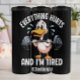 Este gráfico divertido y comprensible presenta un pato de aspecto agotado que lucha por levantar una pesada pandilla. El diseño incluye el texto humorístico y empático 'TODO DUERTA Y YO ESTOY CANSADO', que crea un ingenioso artículo de declaración para cualquiera que alguna vez se haya empujado al gimnasio.