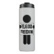 Este diseño muestra a un manifestante sosteniendo un cartel de libertad religiosa.