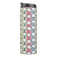 Esta botella térmica tiene un diseño moderno de mediados de siglo de círculos "deformados" blancos conectados con líneas negras en un campo de tiras verdes pálidas, rosa pálido, azul pálido y amarillo pálido. Si te gusta el diseño pero prefieres colores diferentes, envíame un mensaje.