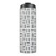 Esta botella termal tiene un diseño moderno de mediados de siglo de conjuntos de cinco líneas negras, alternativamente horizontal y vertical, repitiendo a través del diseño sobre un fondo blanco. Si te gusta el diseño pero quieres colores diferentes, envíame un mensaje.