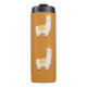 Termo Llama, fondo naranja: patrón de cumpleaños.
