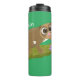 ¡Para los amantes de los lagos! Este tierno primate se dibuja en un estilo personalizado con grandes ojos adorables en una rama cubierta de flores.
