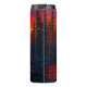 Esta imagen representa un majestuoso escenario con grandes cuervos parados en las aguas superficiales de un lago, silueta contra una dramática y vibrante puesta de sol. El cielo está en llamas con rojos feroces, naranjas y violetas profundas, con un sol prominente en el horizonte. Un denso bosque de árboles de color verde oscuro rodea el fondo y sus reflejos, junto con los colores del cielo, se ven en el agua tranquila.