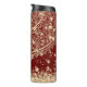 Mandala dorada decorativa y de diseño sobre un fondo rojo rico con estrellas doradas que llueven por el suelo con un dorado purpurinoso que se añade a los vidrios. Las vibraciones encantadoras. Se puede personalizar