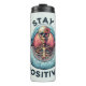 Un tumbler termal audaz y surrealista que presenta un esqueleto tatuado dentro de la boca abierta de una ballena, acompañado de la frase ascendente "Mantente positivo". Este concepto atrevido y artístico contrasta las imágenes oscuras con un giro motivacional, perfecto para los aficionados a la tradición náutica, el arte corporal y las declaraciones irónicas o que provocan la reflexión. Genial para los que aman los diseños alternativos con significado y actitud.