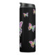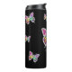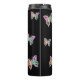 Diseño de bonito con mariposas multicolor y cristal sobre fondo negro. Personaliza con un nombre.