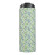 Add a little cheer to your day with a whimsical, hand-painted watercolor floral patterned tumbler, featuring playful blue, orange and yellow daisy blooms dancing on a mint green background.
