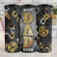 Este gráfico muestra de forma destacada "MEJOR PADRE DE LA HISTORIA" en un tipo de letra negrita, metálica y dorada, con "MEJOR" y "EVER" en blanco. El texto se sitúa sobre un fondo oscuro e industrial que parece estar roto o roto metalizado, con impresiones de tipo bala. Alrededor del texto central se encuentran numerosos engranajes y engranajes en tonos dorados y plateados, creando una estética mecánica y resistente, perfecta para un padre que participa en oficios o ingeniería.