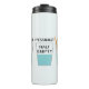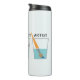 Tres vasos, medio llenos, medio vacíos, y uno con un pincel con pintura azul para ser usado por un artista.