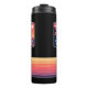 Diseño vectorial minimalista de una puesta de sol sobre la bahía de Biscayne y Miami visto desde el archipiélago de Miami Beach. Personalizable de texto para conmemorar sus vacaciones o su amor por su hogar tropical paradisíaco aquí.