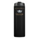 El tumbler termal se muestra en un color sólido de negro brillante con una brillante impresión de la corona plateada. El texto de ejemplo para el personalizar es de un título y un nombre que se muestran en el color de arena dorada, pero personalizar a los colores que se desean. Podría ser un gran recuerdo para aumentar las ventas de desfile con el nombre de la reina para los aficionados al desfile. El tumbler térmico mantiene las bebidas como debe, caliente o fresco.