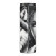 Una mujer llamativa con el pelo oscuro y los ojos intensos que fluyen, es representada en un ilustracion blanco y negro detallado. Un majestuoso lobo con mirada penetrante se encuentra muy cerca de ella, con sus rostros casi conmovedores, creando un retrato potente y enigmático que enfatiza su conexión e intensidad individual.