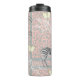 El moderno y elegante tumbler termal de chile presenta un diseño ecléctico bohemio-de moda con cebras, mariposas, estampado de leopardo y contorno floral en rosa y gris pastel y un elegante borde negro y blanco de rayas. Diseñado exclusivamente para usted por Happy Dolphin Studio.