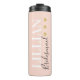 Tumblor térmico rosa de la dama de honor personalizada. El diseño es contemporáneo y moderno, el diseño de texto está en posición vertical. Los corazones de Faux Gold agregan un toque de glamour. Personalizar con su nombre y título boda para un boda termal verdaderamente único y personalizado. Perfecto para las damas de honor, madre de la novia, madre del novio, novia o uso diario. Puede personalizar el tamaño del texto, el color del texto, el tipo de letra y el diseño de su preferencia de diseño boda personal.