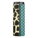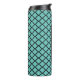 En este elegante tumbler termal, un elegante patrón de quatrefoil sobre un fondo turquesa con una pancarta marrón donde se puede personalizar y al lado de la pancarta hay un diseño de jirafa exótica que crea vibraciones de moda a la moda.