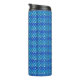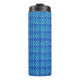This is a Habatour Creations thermal tumbler, filled with an authentic modern abstract digital pattern design, featuring vibrant blue hexagons & bubble accents.