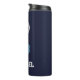 Create your own custom, personalized, cool, chic, trendy, classy, modern, stylish light blue and white typography / font / script, 16 oz., sleek cylindrical shape, vacuum-sealed double-walled construction, dark navy blue, stainless steel monogrammed player name jersey number thermal tumbler that keeps your warm beverages warm and your cool beverages cool, all while keeping your hands comfortable. Simply type in your name / kids name / player name and player jersey number, and add your team / club / school logo, to customize. Perfect for your favorite hot & cold beverages, health drinks, shakes, tea, coffee, soup etc and for gym, sports field, hiking, camping, trekking, school, college, home, office. Makes a great gift for wedding, birthday, graduation, fathers day, mothers day, christmas, holidays, marriage anniversary, valentines day, back to school, and more, for your loved ones, kids, girlfriend, boyfriend, mom, dad, son, daughter, brother, sister, husband, wife, grandparents, teams, club, teammates, athletes, player, coach, sportsmen, friends and family.
