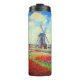 Tumbler termal con la pintura de Claude Monet de flores y molino de viento. Hermosos y coloridos campos de tulipanes rojos, rosados y amarillos junto a un molino de viento y casa en Holanda. Un gran regalo de Monet para los amantes del impresionismo y el arte francés.