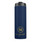 Este tumbler personalizado es sencillo, sofisticado y elegante. Presenta un fondo azul marino con un monograma dorado y tipografía de escritura para su personalización. Los colores se pueden personalizar a su elección