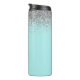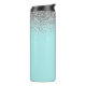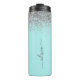 Taza para bebida con monograma de metal cepillado con brillo azul acuatico y plateado. Este es el regalo perfecto para cumpleaños de 16 años, boda, despedida de soltera, aniversario, baby shower o fiesta de soltera para alguien que ama el lujo y los estilos elegantes.